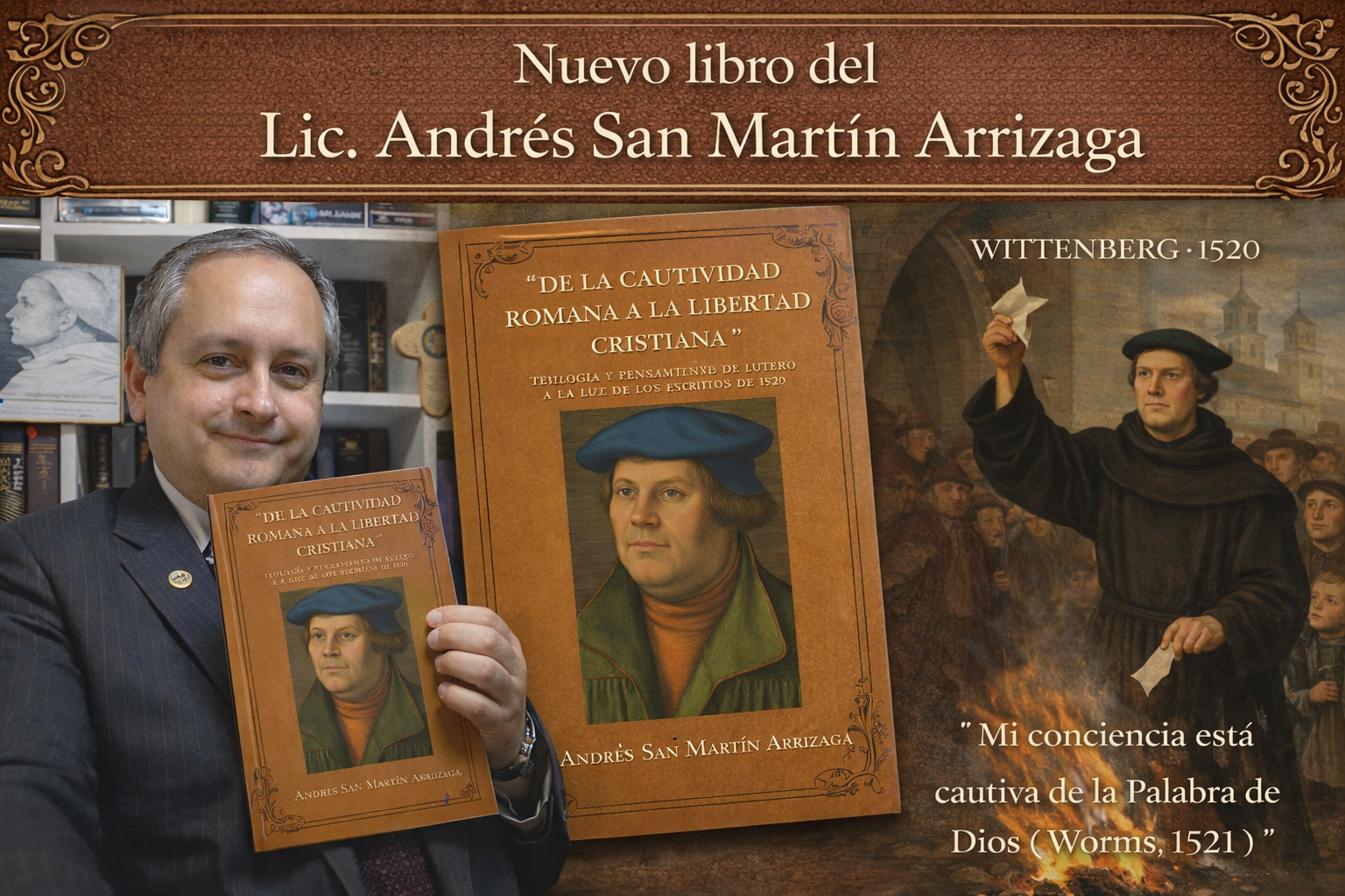 Te presentamos el nuevo libro del dueño de esta web, tu servidor, Lic. Andrés San Martín Arrizaga. Nos referimos al libro “De la cautividad romana a la libertad cristiana: Teología y pensamiento de Martín Lutero a partir de los escritos de 1520”. NO se pretende hacer una biografía de Lutero, sino un libro sobre su pensamiento temprano, triangulándolo con sus catecismos y la Luther Bibel. Si deseas adquirirlo, escribe a luterano1517@gmail.com